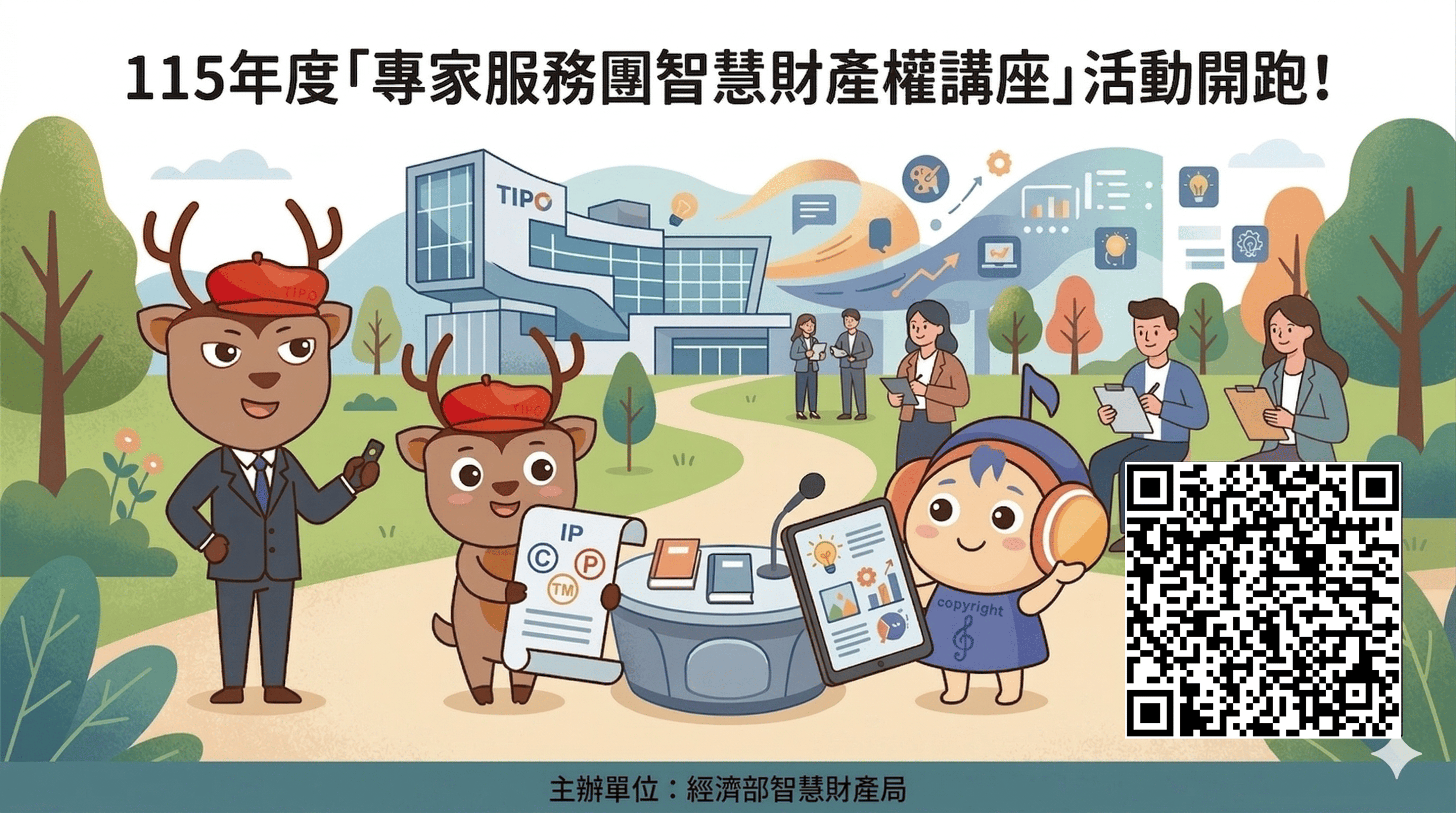 若您對上述智慧財產權相關議題有疑惑,或希望進一步瞭解、增進知識,歡迎申請由本局辦理的「專家服務團智慧財產權講座」!