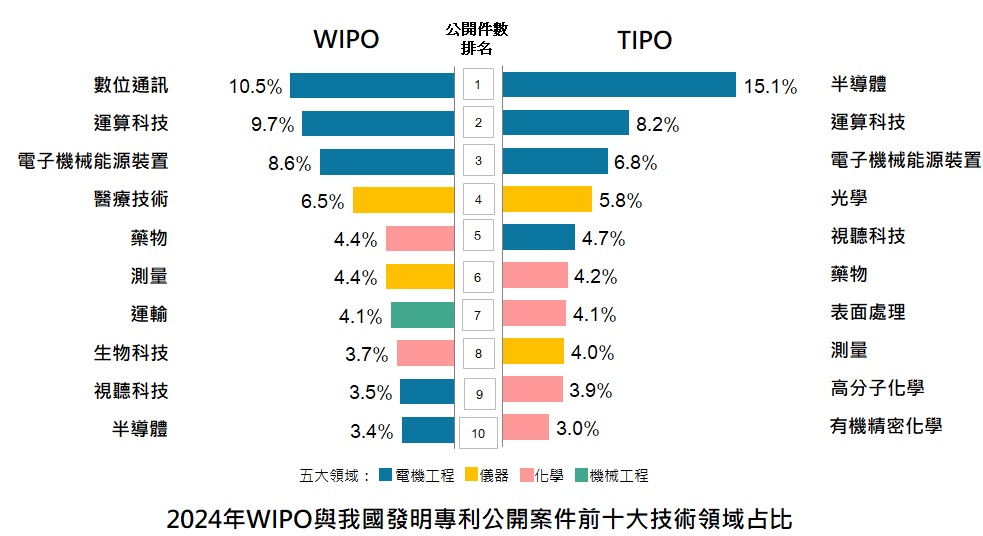 ● 「數位通訊」成為WIPO發明專利申請技術領域首位,「半導體」穩居我國第1