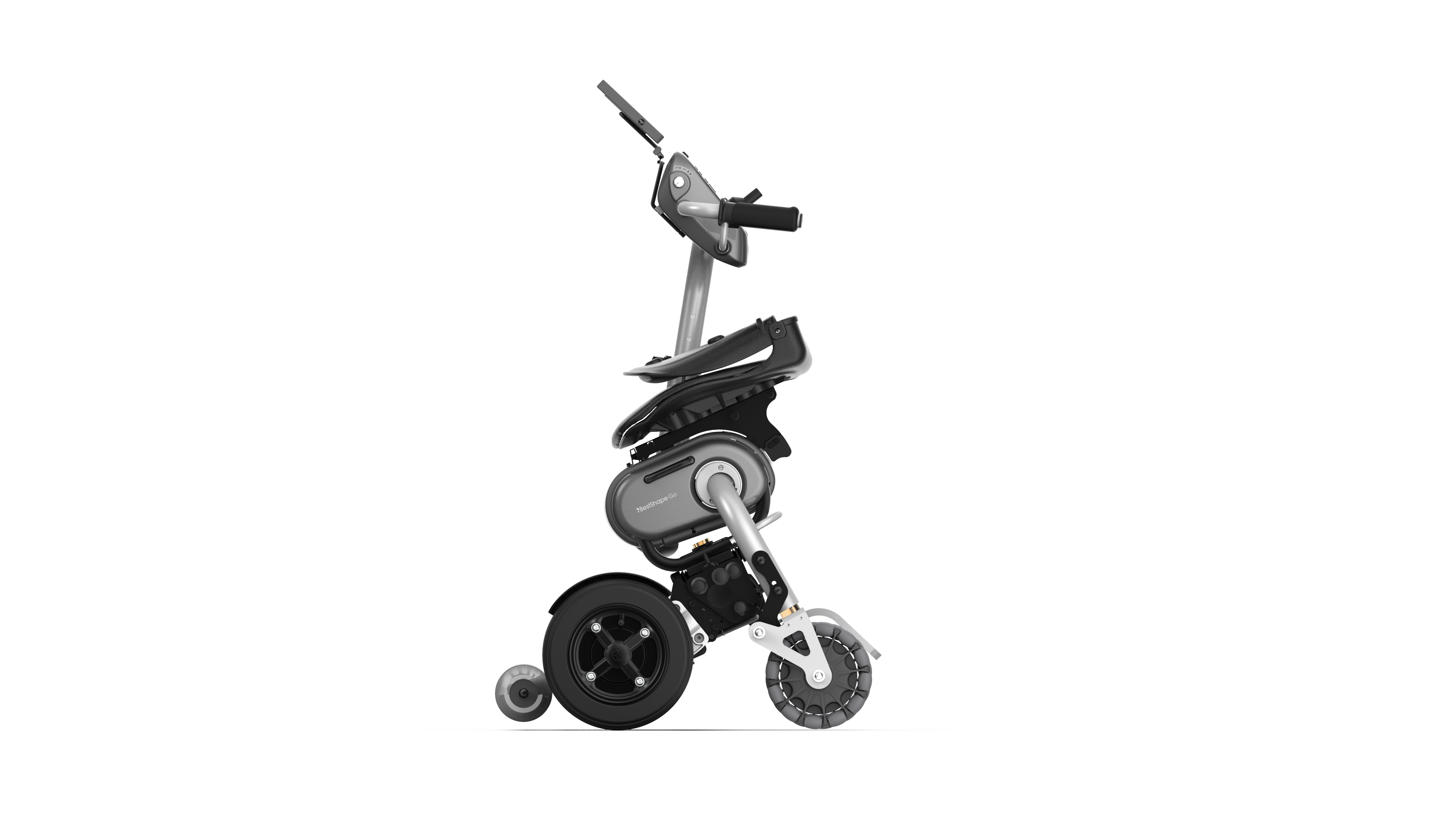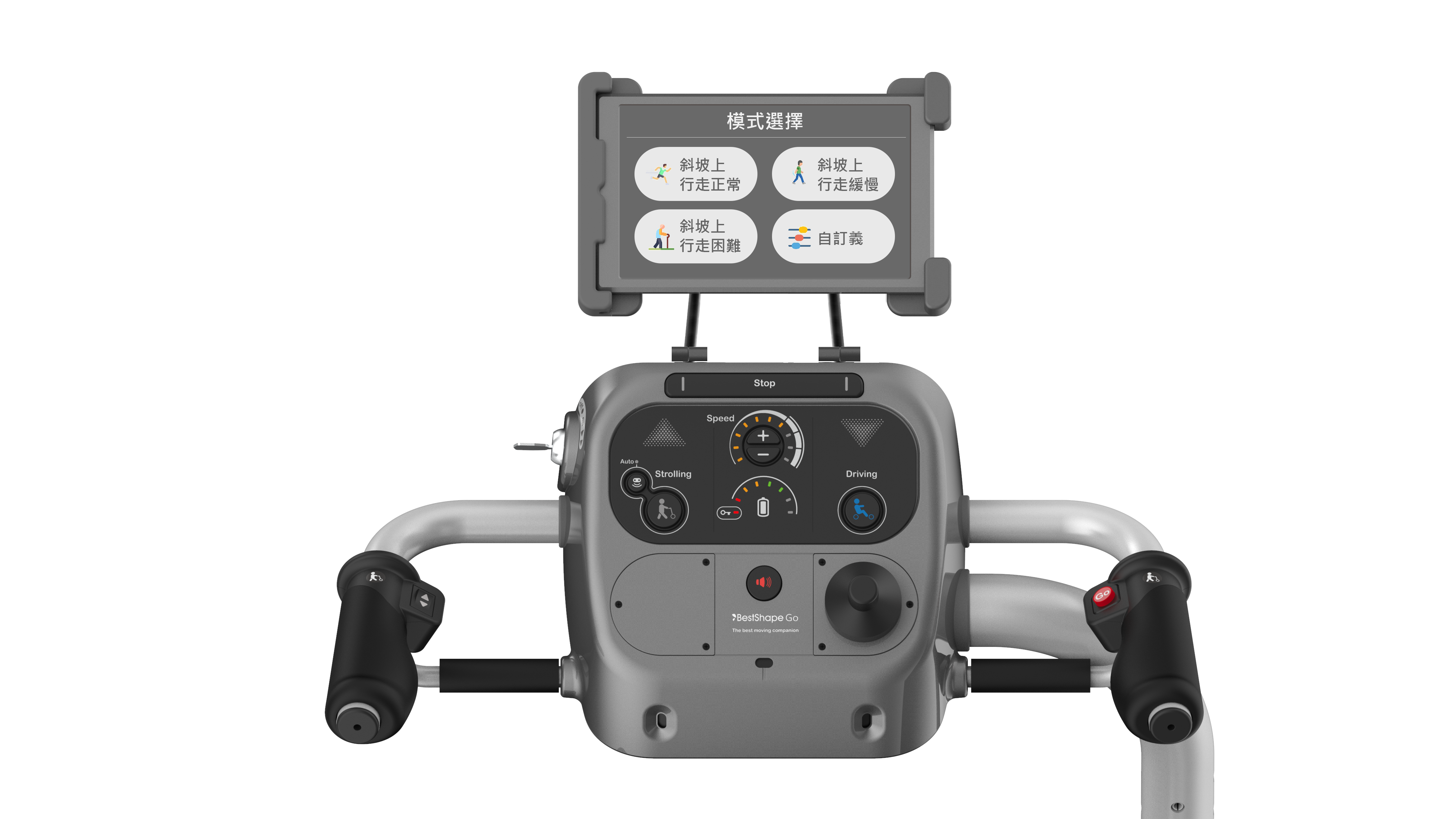 助行+騎乘雙模式 讓長者行動無礙 因應高齡化社會來臨,緯創資通/緯創醫學研發團隊針對銀髮族常見的行動受限問題,開發具助行與騎乘雙模式的助行器,在助行狀態下,使用者可推著助行器行走,隨時變換模式,擴大自主行動範圍(走累了可切換成騎乘模式,不必擔心走太遠回不去的問題)。此產品具有路面斜坡感知能力、偵測使用者站立的相對位置,並能自動調適速度、輔助動力與自動煞車,提升行動便利性與安全性,搭配專屬APP,精準適配不同族群需求,提供穩定舒適的步行體驗。