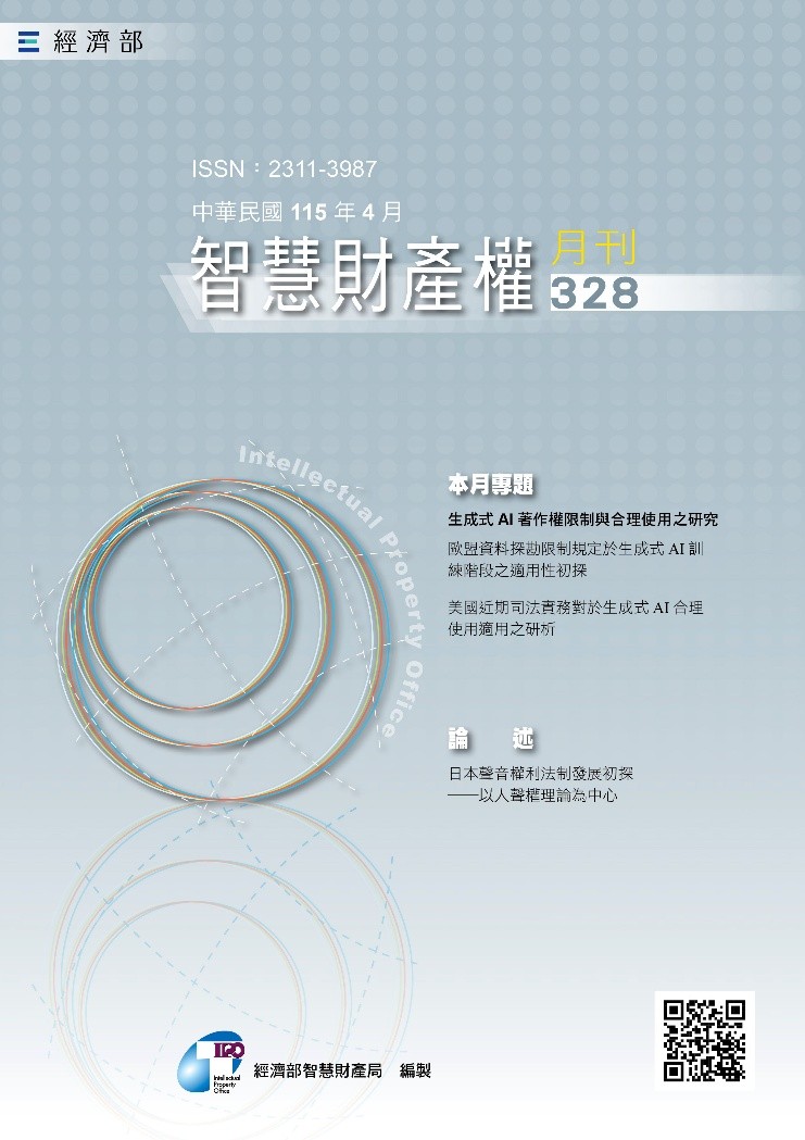 115年4月號第328期智慧財產權月刊出版新訊(國際及法律事務室)本月專題—生成式AI著作權限制與合理使用之研究 隨著生成式人工智慧(Artificial Intelligence, AI)技術迅速崛起,帶來的許多創新應用與產業變革。其中,生成式AI於訓練階段大量蒐集並利用他人著作之行為,是否構成著作權法上之重製或其他利用,抑或得主張合理使用?引起許多討論及爭議。相關爭議與訴訟案件於各國陸續發生,各國法院對於生成式AI訓練行為之法律見解與判斷標準,正逐步形塑新興... - 4